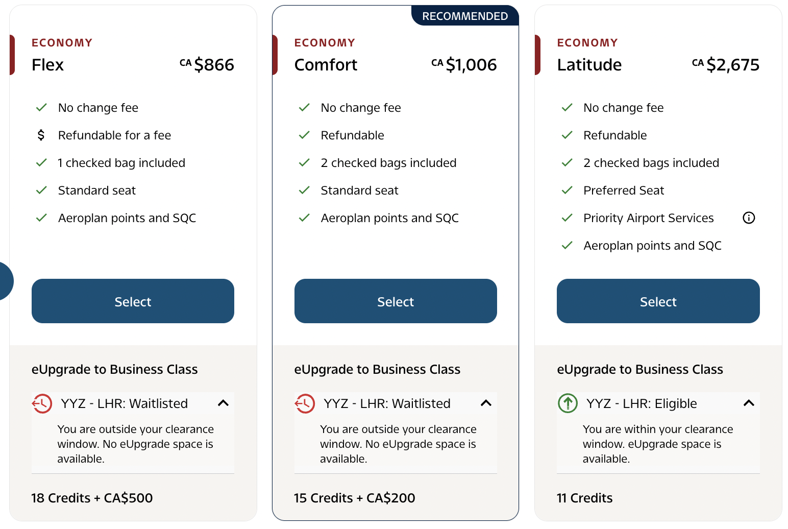 I am SE100K member and I have an Amex Aeroplan Reserve and TD Infinite Aeroplan credit card. I rarely use eupgrades but today I booked a Latitude fare using Aeroplan points and tried to use my eupgrades. Prior to booking the flight I checked the AC website using the eupgrades filter which showed that “seats are available for upgrade”, however my request for an upgrade is in “waitlisted” status. The plane is empty and when I called AC concierge it turns out that no R class fares are available for our outbound flight (787-8 YYZ-HNL).