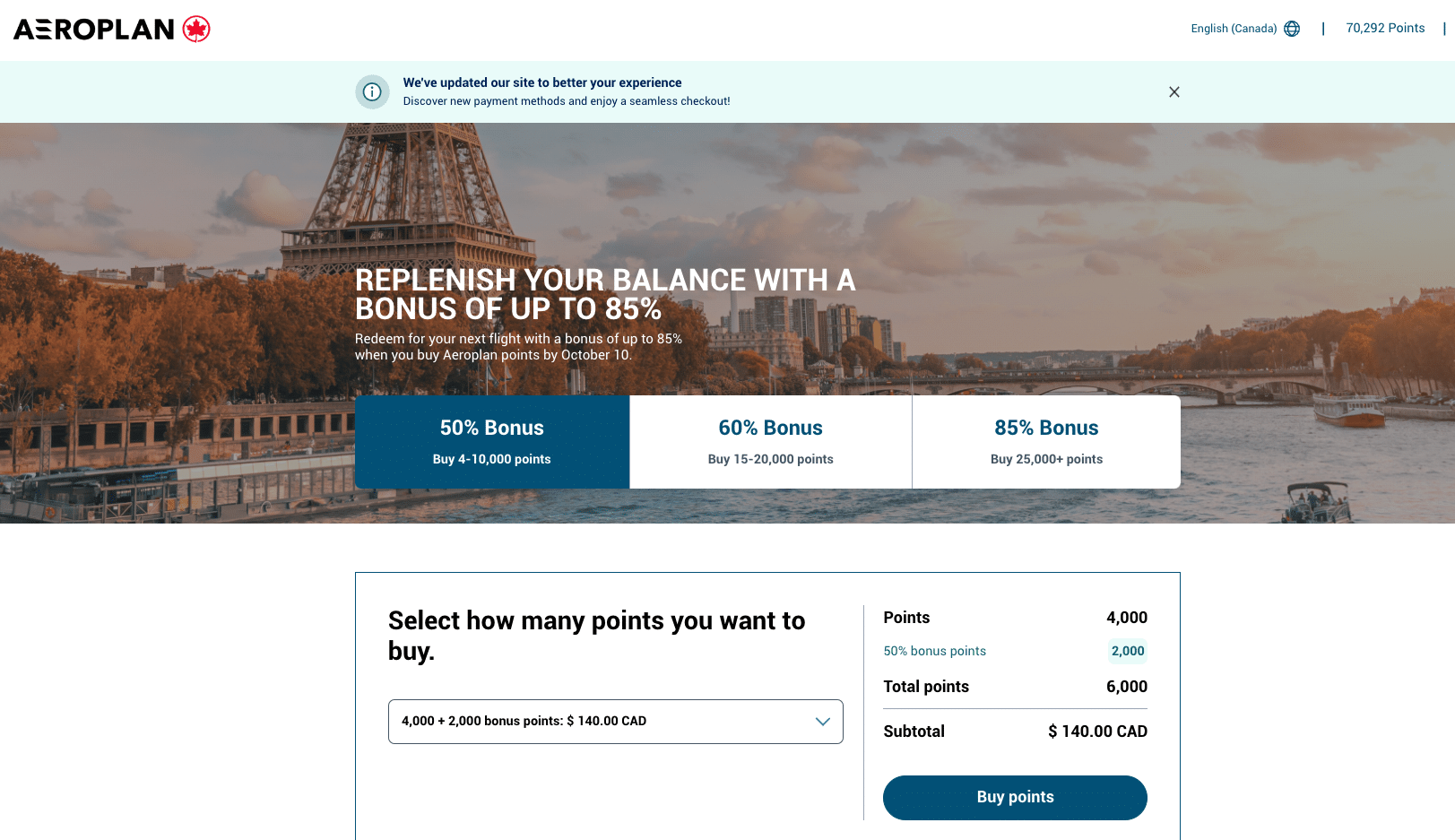 Similarly to transferring points or making purchases through an airline’s online shopping portal, it’s a good idea to watch out for promotions that offer bonus points to maximize your purchase if you do decide to buy points.