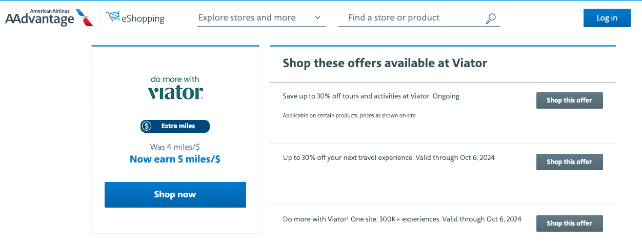 If neither hotel stays nor car rentals are in your plans, you can also consider booking an activity to earn points. For example, through the American Airlines AAdvantage eStore, you can earn AAdvantage miles by booking tours and activities via Viator.