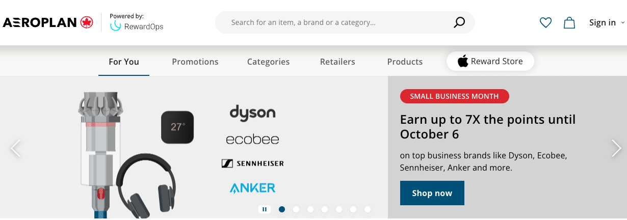 One of the best examples of an online shopping portal is the Aeroplan eStore which has a long list of retail partners in Canada, such as Amazon, Apple, and Lululemon.