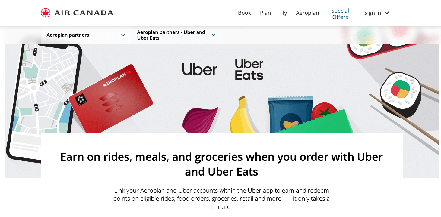 For example, you can link your Aeroplan account to Uber and earn Aeroplan points every time you catch an Uber ride or order food through Uber Eats.
