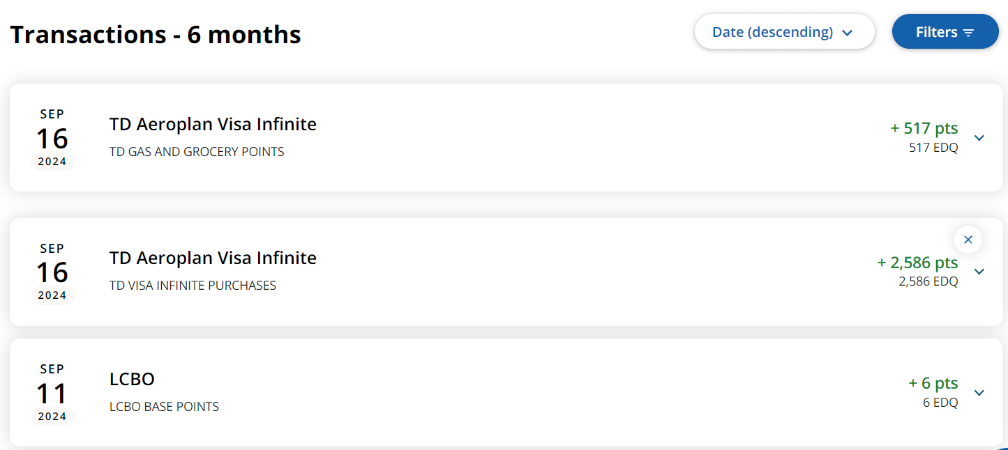 For example, if you hold a TD® Aeroplan® Visa Infinite* Card, every time you make a purchase, you’re not only earning Aeroplan points from those purchases, but you’re also extending your points balance expiration date by 18 months.