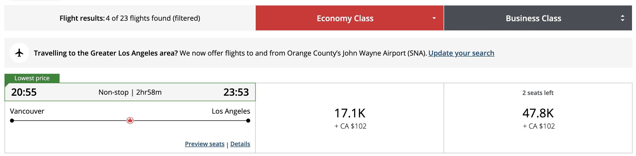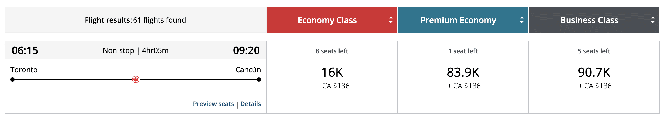 Keep in mind that Air Canada’s redemptions are priced dynamically so the actual prices can end up being considerably higher when there is a large demand for a particular flight/seat.