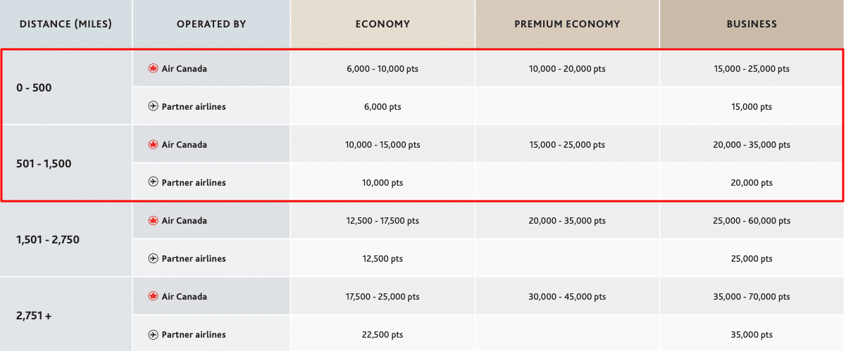 When it comes to booking flights within this zone with Aeroplan points, there are four distance bands to note.