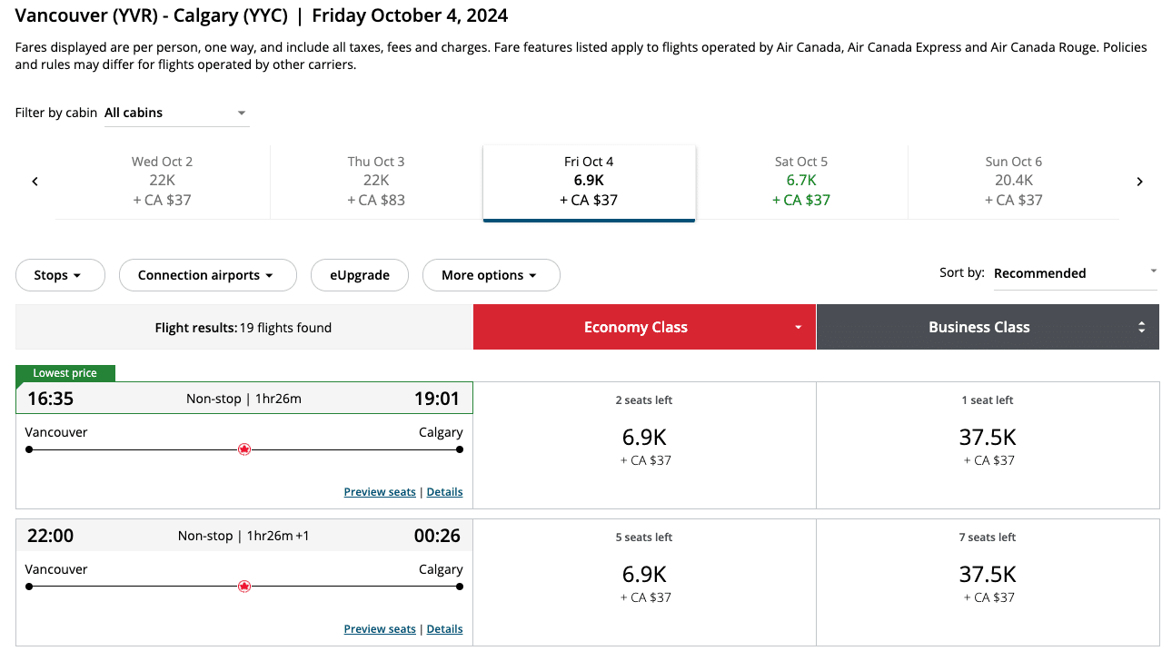 When looking for decent redemption value, we’ll aim to find flights that are priced towards the lower end of the dynamic range for flights with Air Canada and the fixed cost price in points for redemptions with partner airlines.