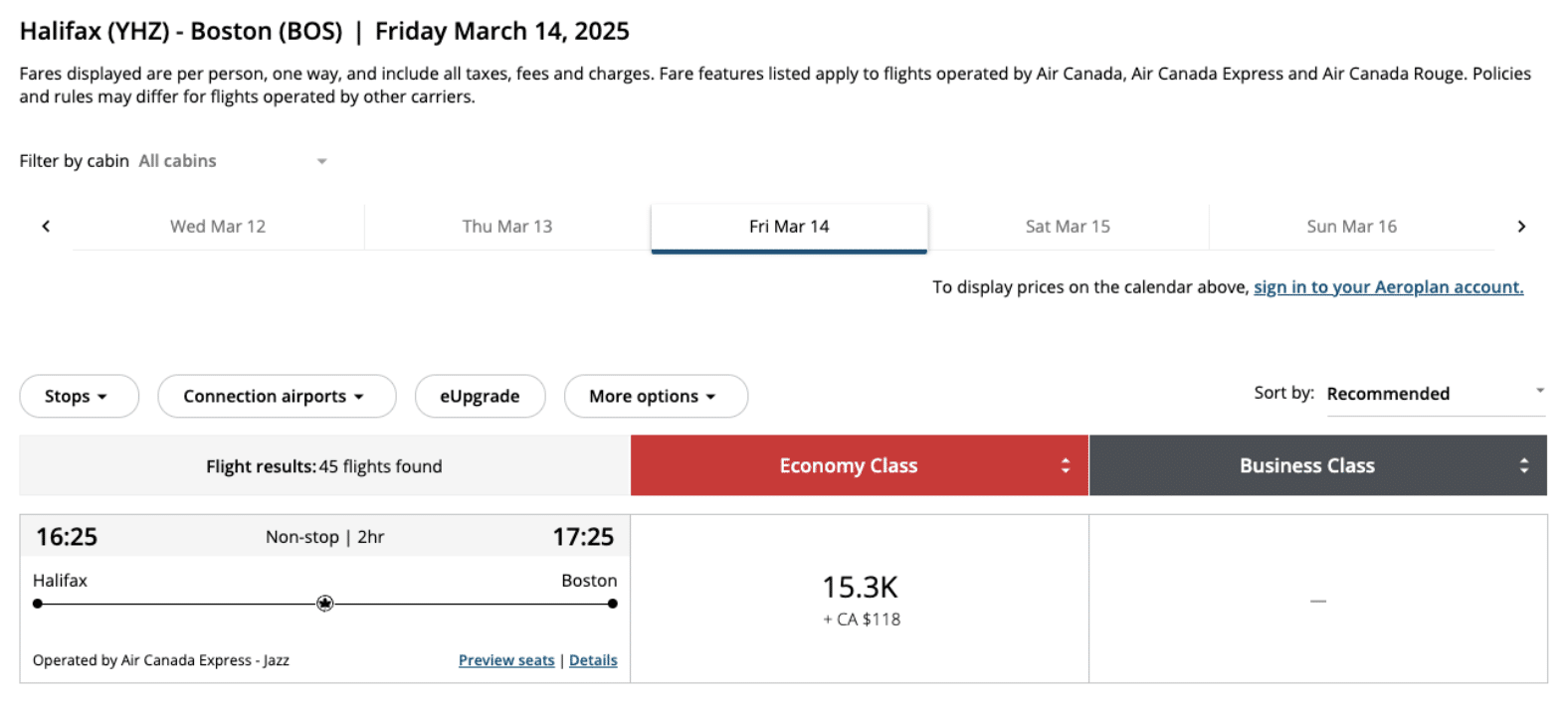 Albeit, some flights are not showing in Aeroplan as of late.