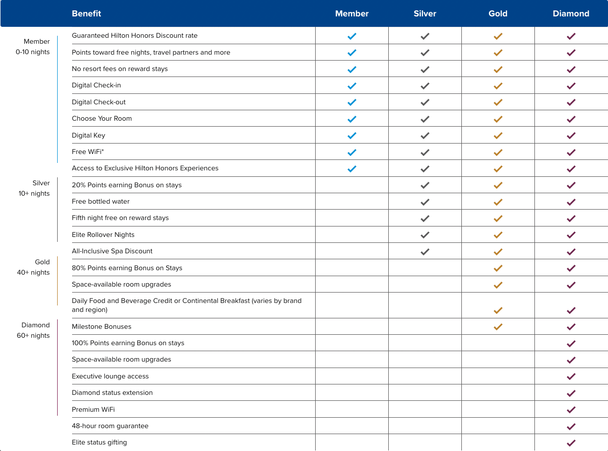 It’s also worth noting that Hilton offers “Elite Rollover Nights” for their members who already hold Silver, Gold, and Diamond status.