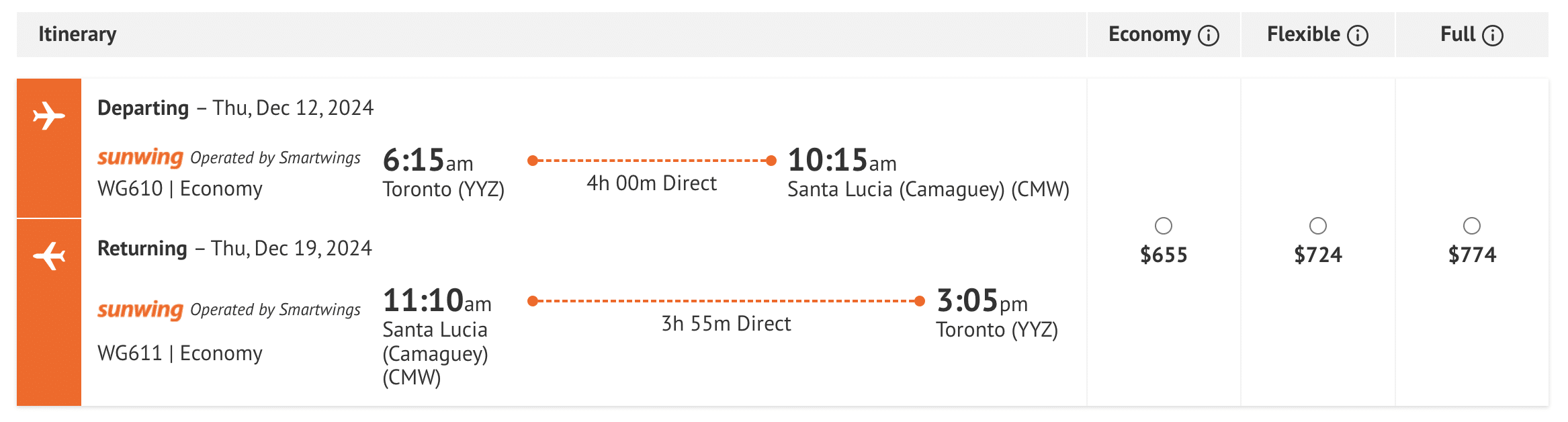 As Sunwing mainly deals with vacation packages, the flights above are better (and more cost-effective) when bought as packages with hotels.