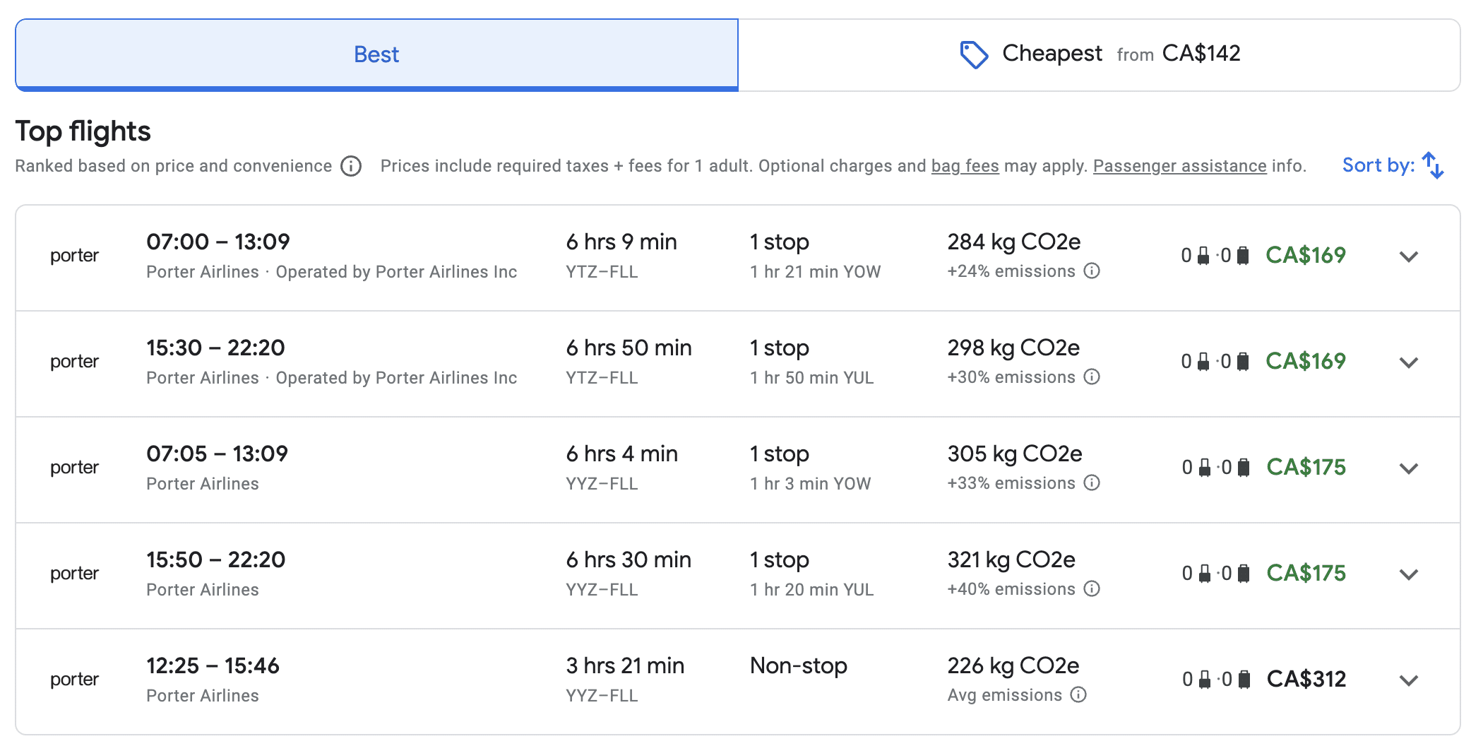 Porter has been lowering its prices to better compete with WestJet and Flair Airlines, so you’ll surely find deals on the routes above. You can use Google Flights to help you search for flights and compare prices across multiple airlines.