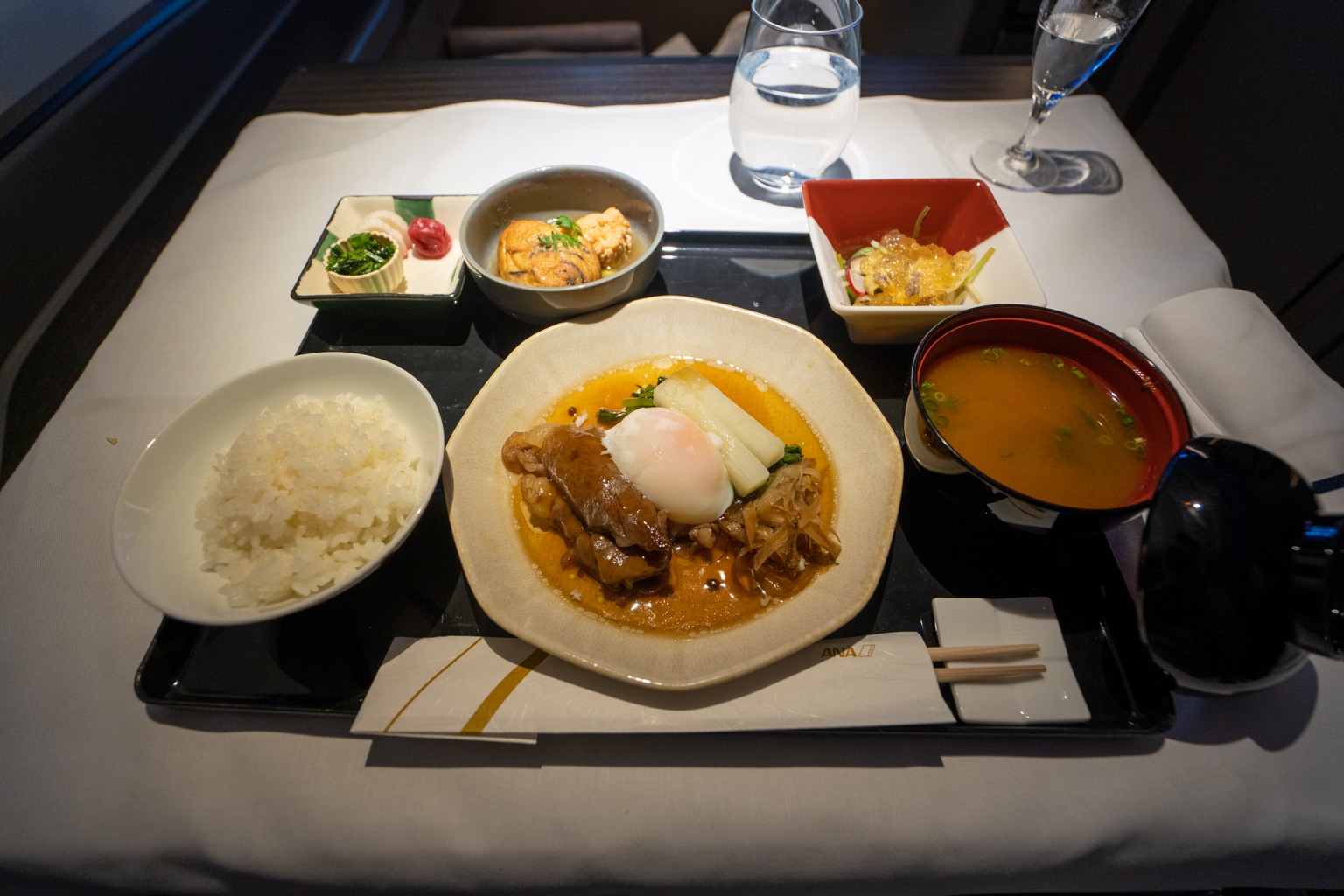 Additionally, ANA’s First Class dining features high-end ingredients, such as Japanese black wagyu beef, complemented by top-shelf Japanese whiskey, sake, wines, and Champagne.