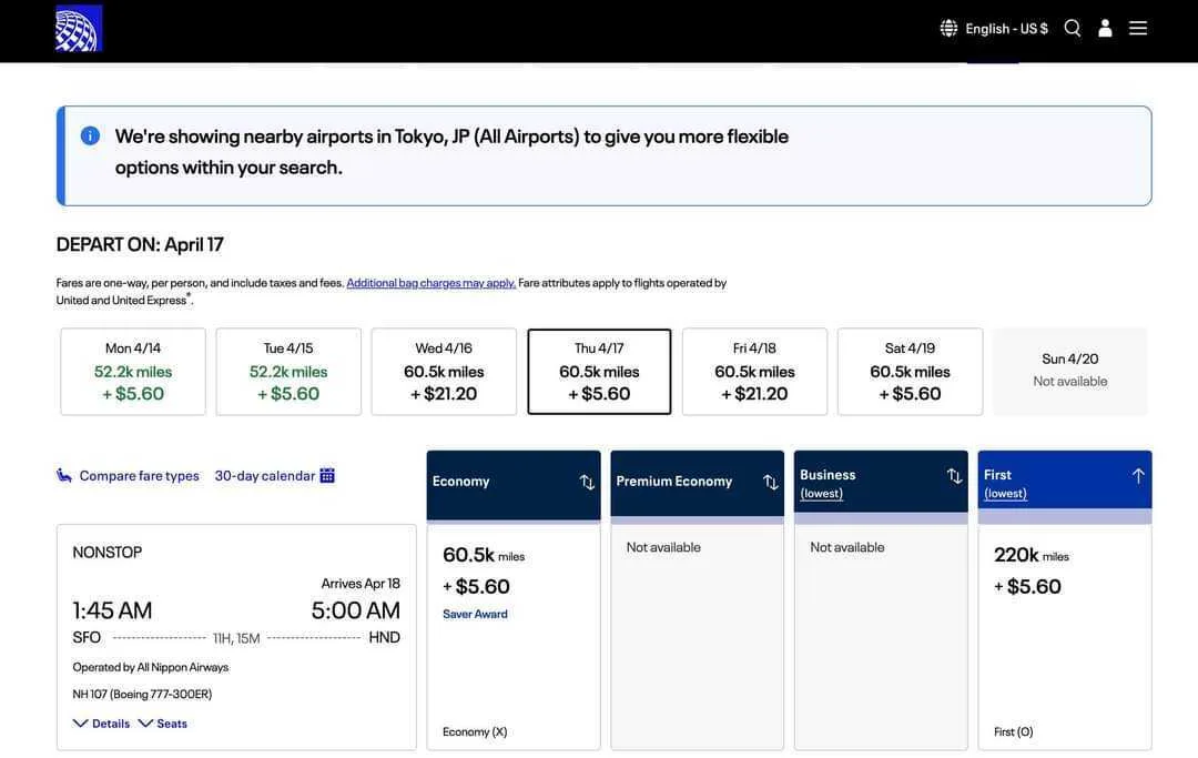 Another thing to note is that unfortunately ANA First Class award availability can be quite rare. To get your hands on one of these coveted seats, you’ll need to painstakingly check various dates and destinations, and in most cases, you’ll still only find one seat available.