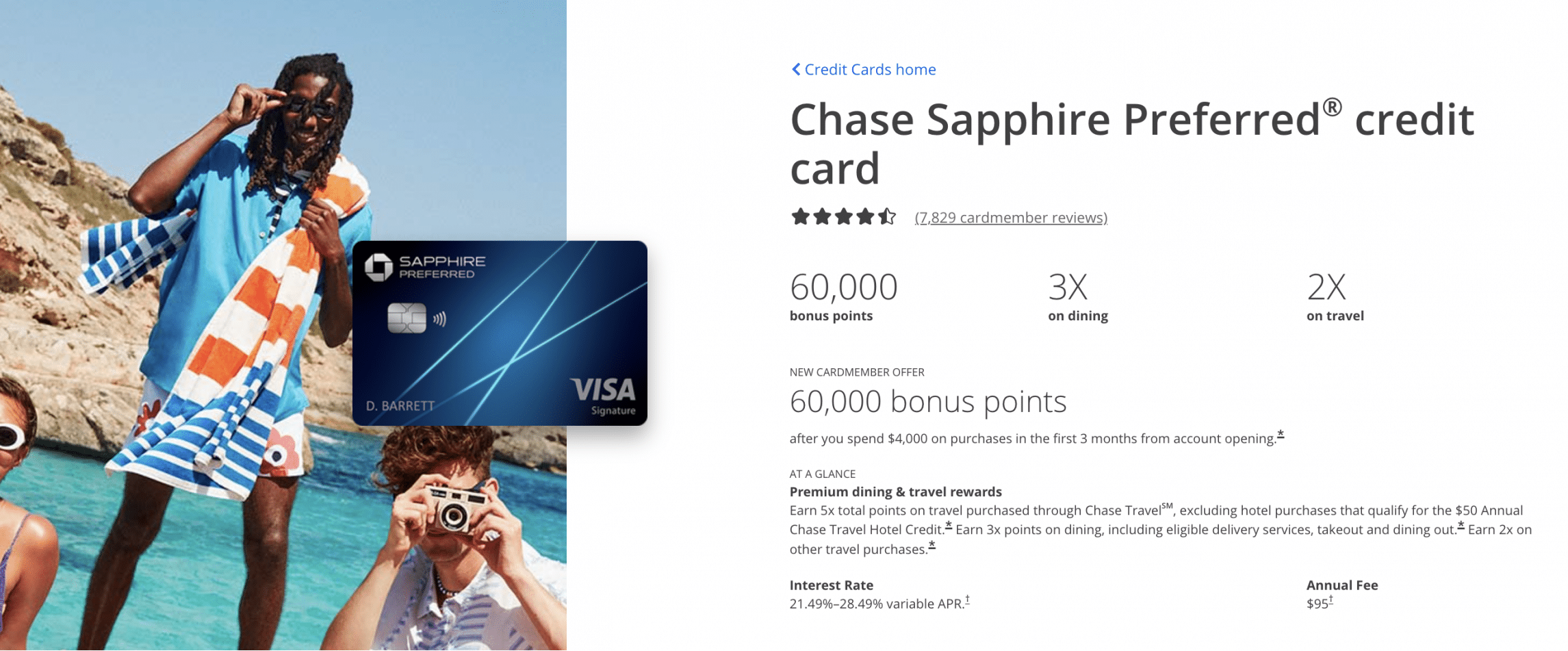Similarly to the Chase Ink Business Preferred® Credit Card, the Chase Sapphire Preferred® Card also commands a $95 annual fee, but its welcome bonus is quite a bit lower, typically coming in around 60,000 Chase Ultimate Rewards points.