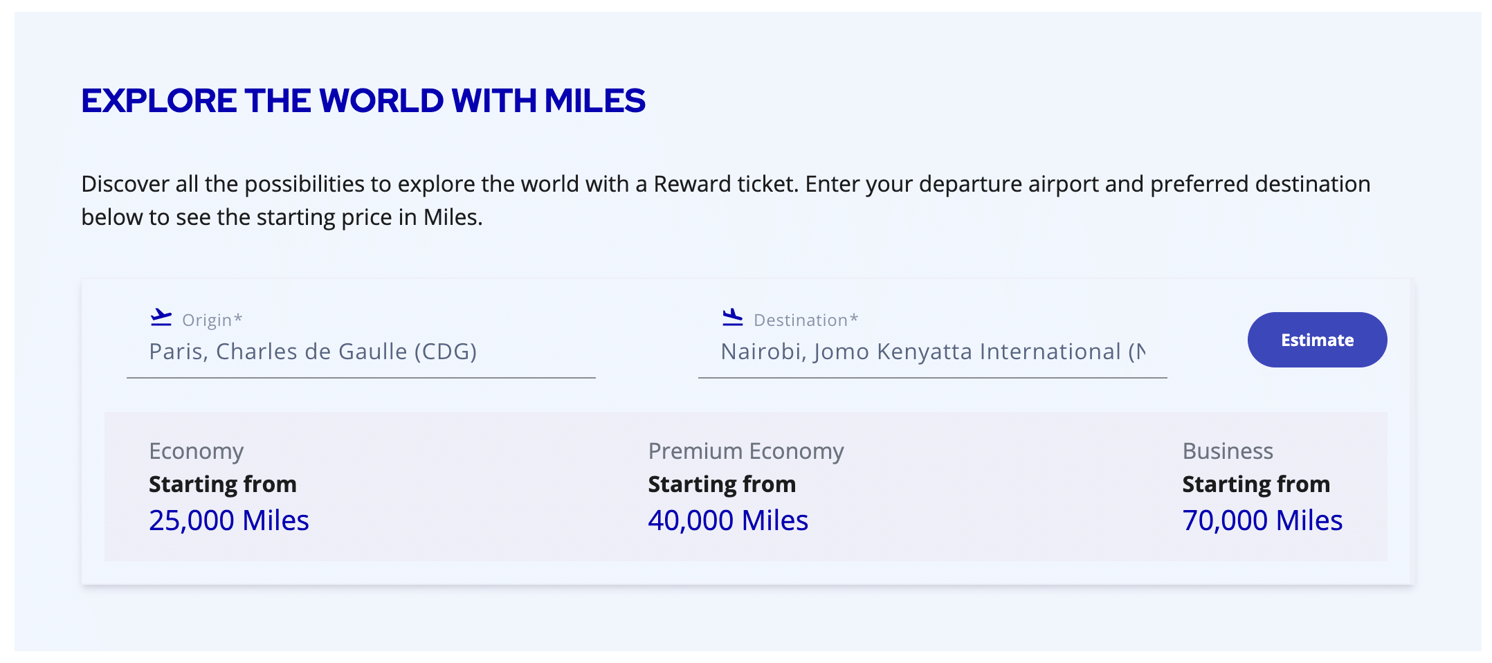 Based on the points estimator feature on the Air France website, 95,000 miles also seems to be the correct price for a flight from North America to Africa – given that Flying Blue stopovers are free.