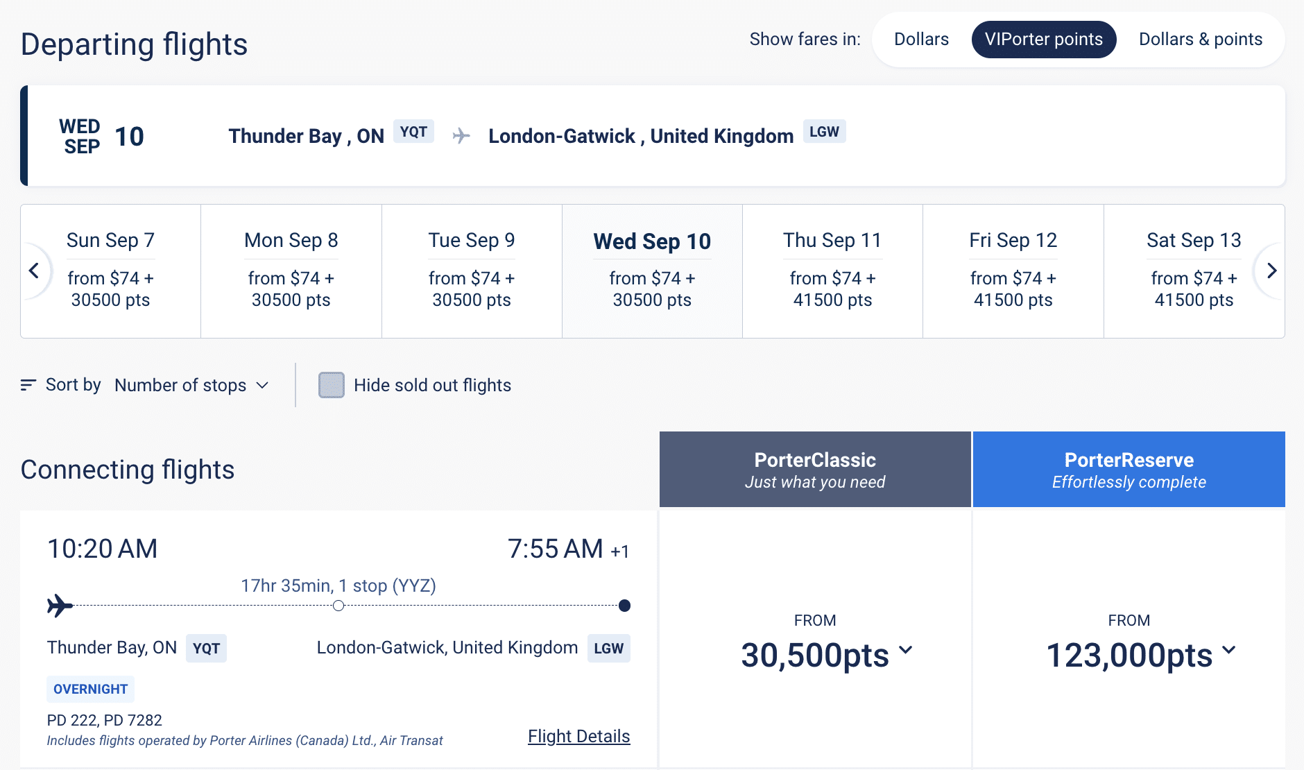 Thunder Bay (YQT) – London Gatwick (LGW): 30,500 points