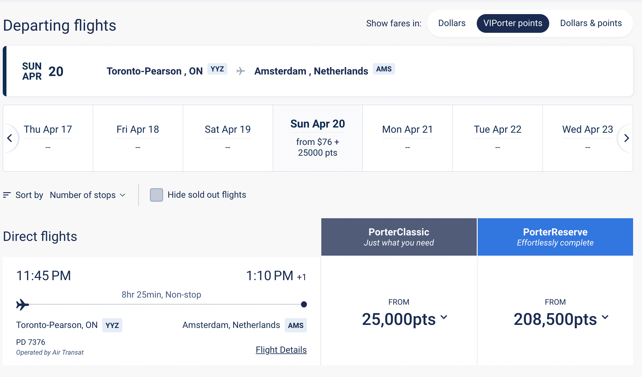 Toronto (YYZ) – Amsterdam (AMS): 25,000 points