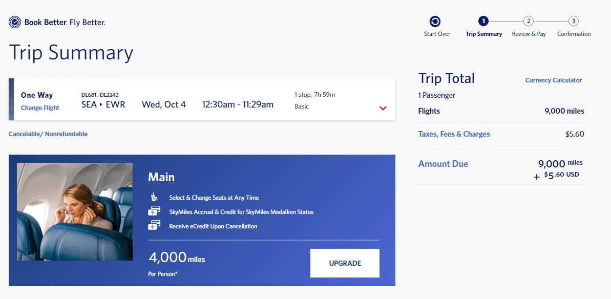 You can also use Delta SkyMiles to upgrade your Delta flights paid in cash, and you may even upgrade some partner airline flights to the next cabin tier.