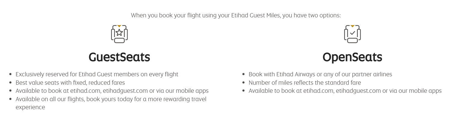 GuestSeats are similar to “Saver” awards or lower-priced redemptions. Exclusive to Etihad Guest members, GuestSeats are priced based on the amounts shown on the online miles calculator.