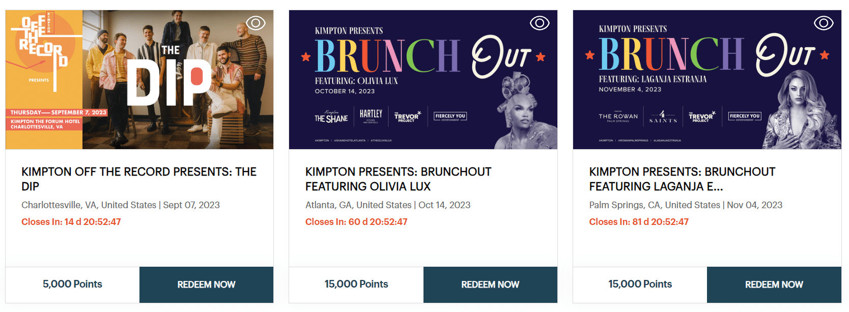 First, IHG One Rewards Access allows you to use your points on activities, concerts, and events. Examples of experiences you can bid for or redeem outright are sporting events and drag brunches.