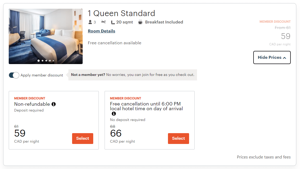 Merely joining the IHG One Rewards program already entitles you to Member Rates, which are up to 5% lower than the non-member best available rates.