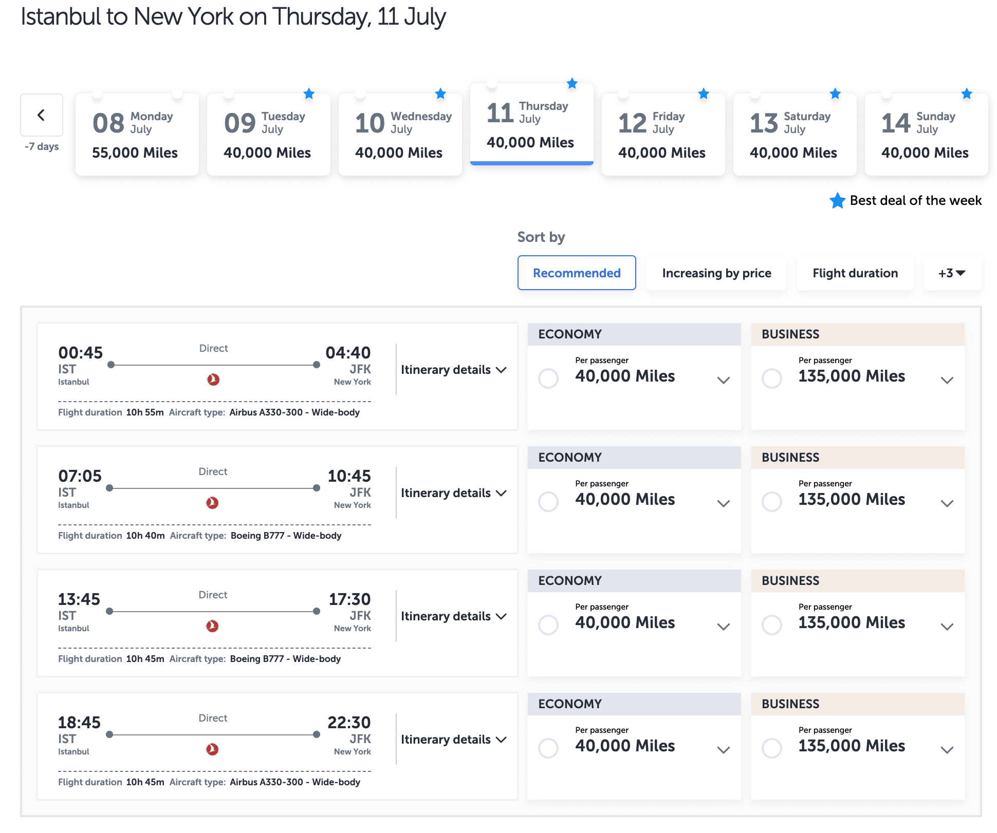 Naturally, long-haul flights, like Toronto or Montreal to Istanbul, are harder to come by as promotional or “Saver” awards; thus, you’d often have to pay more miles under the regular award table. However, higher-frequency flights like Istanbul to New York generally have more availability.