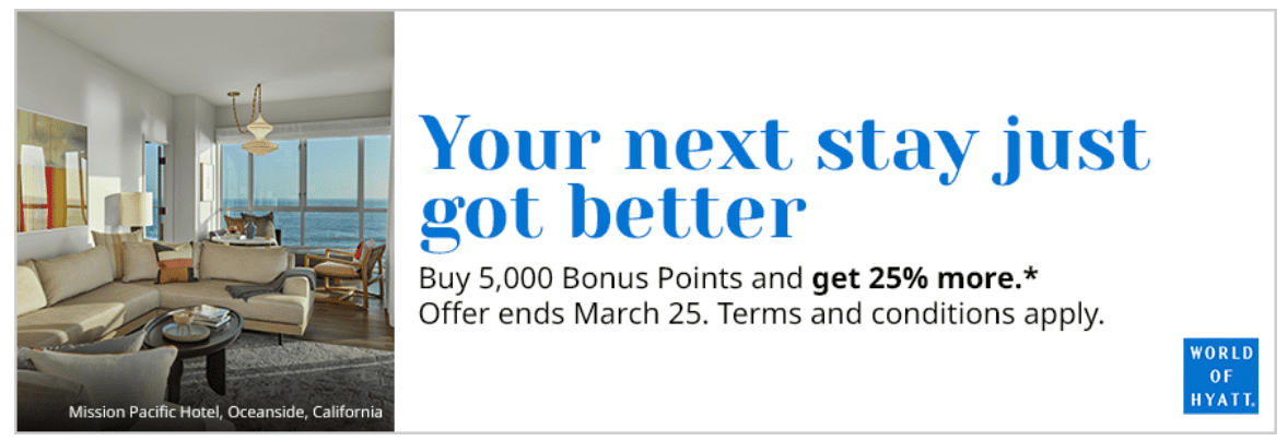 Hyatt also runs promotions on purchased points a few times throughout the year. The best offer we’ve seen in recent years is a 30% discount on purchased points.