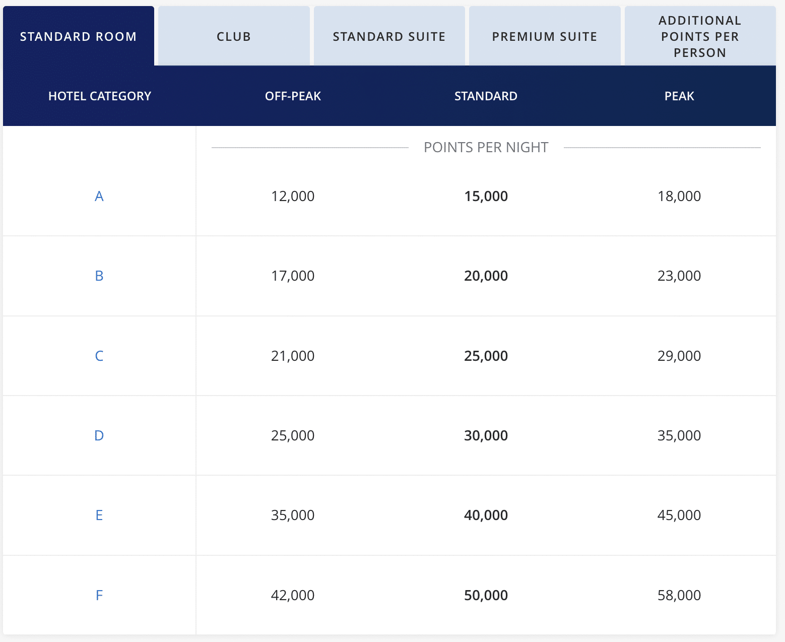 Similar to booking a regular room, these prices are also tied to the category of the hotel and are subject to off-peak, standard, or peak pricing dates.