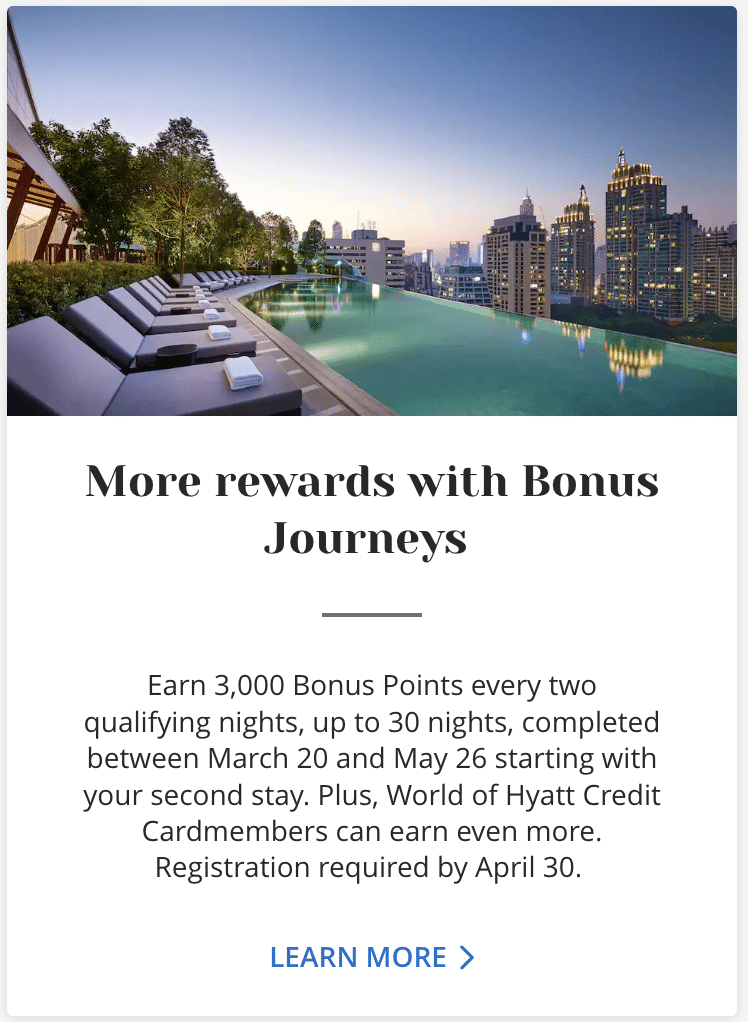 On top of earning points in the ways already covered, Hyatt will often have promotions to encourage you to stay at their properties. Some of these promotions reward you for staying at specific properties or brands.