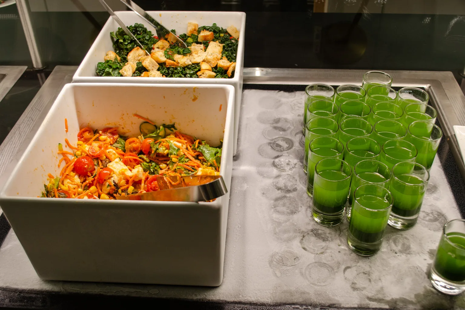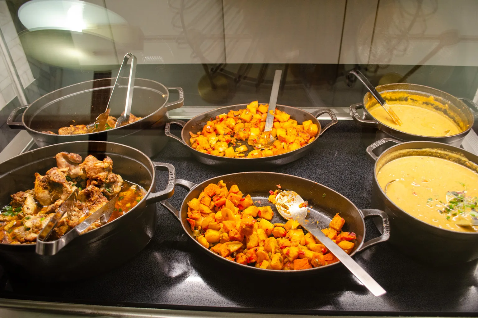 You’ll also be treated to a curated beer, wine, and cocktail selection, made-to-order coffee, and an elevated, albeit smaller, buffet area.