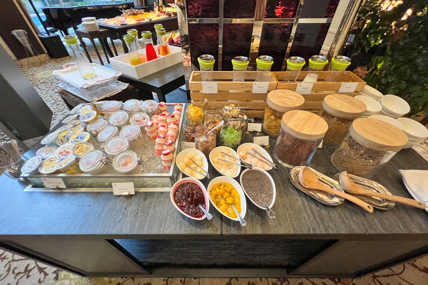 Breakfast is served buffet-style or à la carte at Brasserie Les Saveurs, located on the lobby level, from 6:30–10:30am. If you’re a Marriott Bonvoy Platinum Elite member or higher, then you’ll enjoy complimentary breakfast at the St. Regis Singapore.