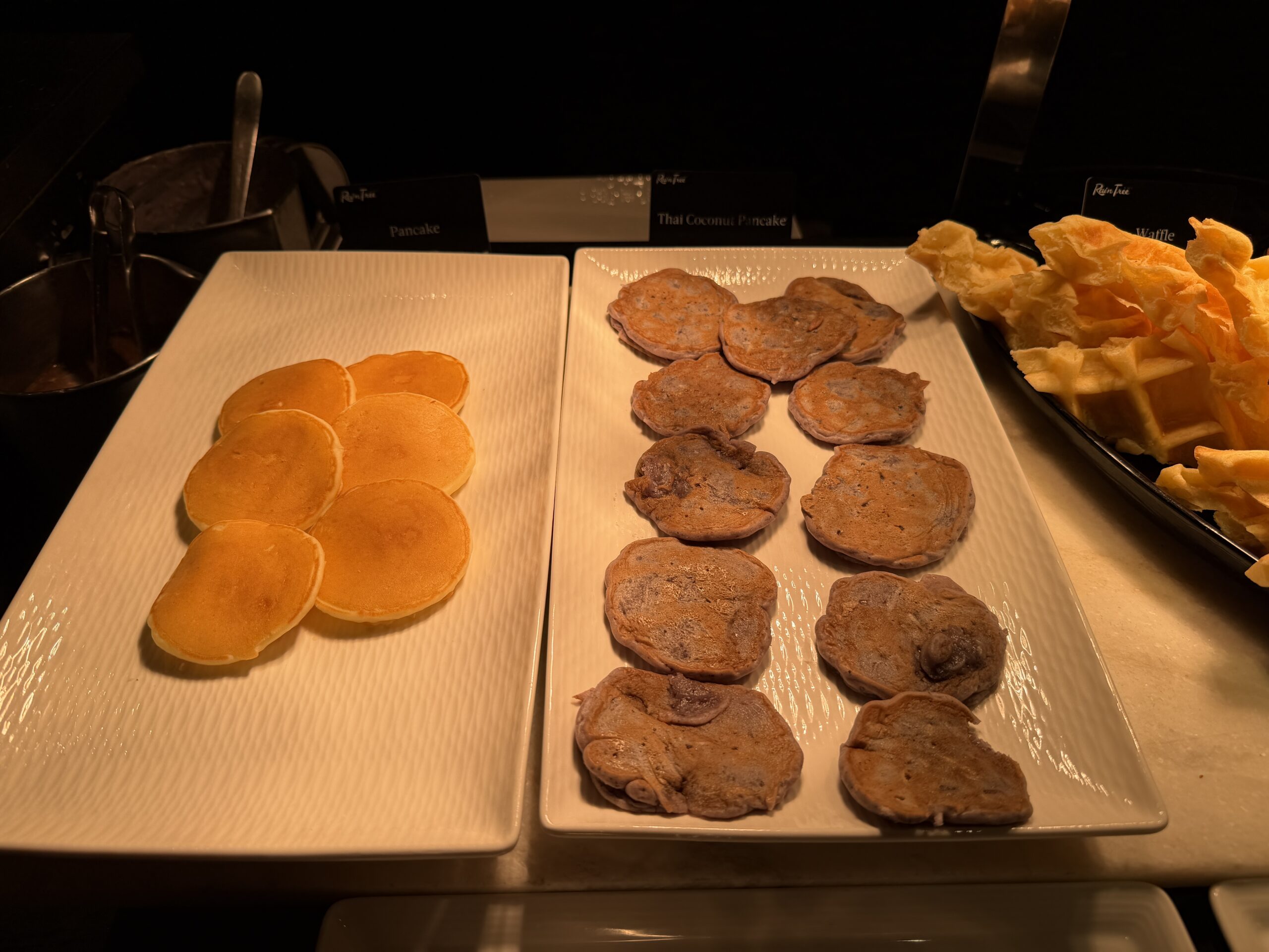 On the same counter, you can also grab pancakes, waffles, French toast, or Thai coconut pancakes, which keeps the made-to-order items neatly in one place.
