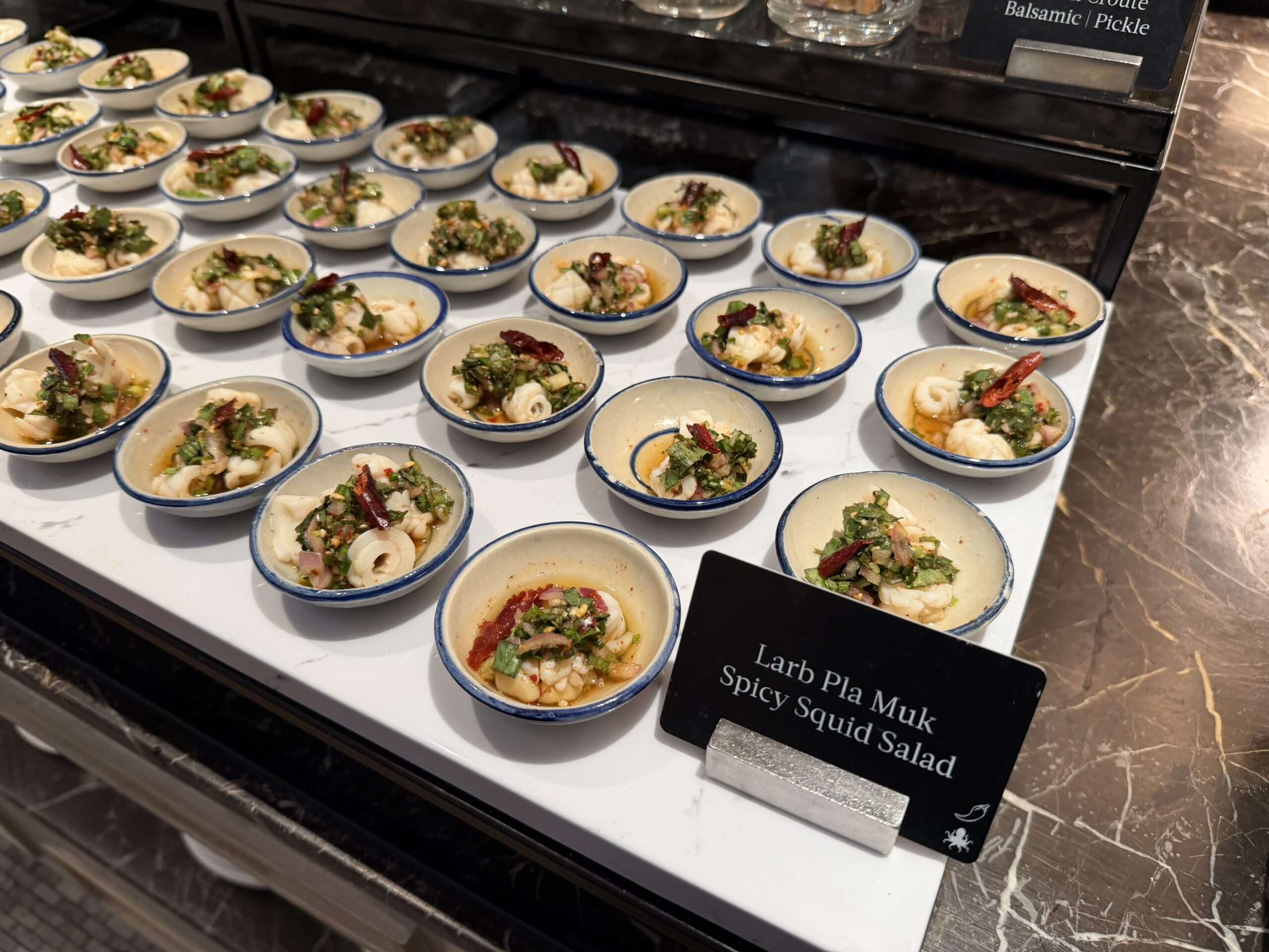 The bites leaned heavily Thai – think small, jewel-like portions topped with herbs and edible flowers – and paired nicely with a glass of sparkling wine.