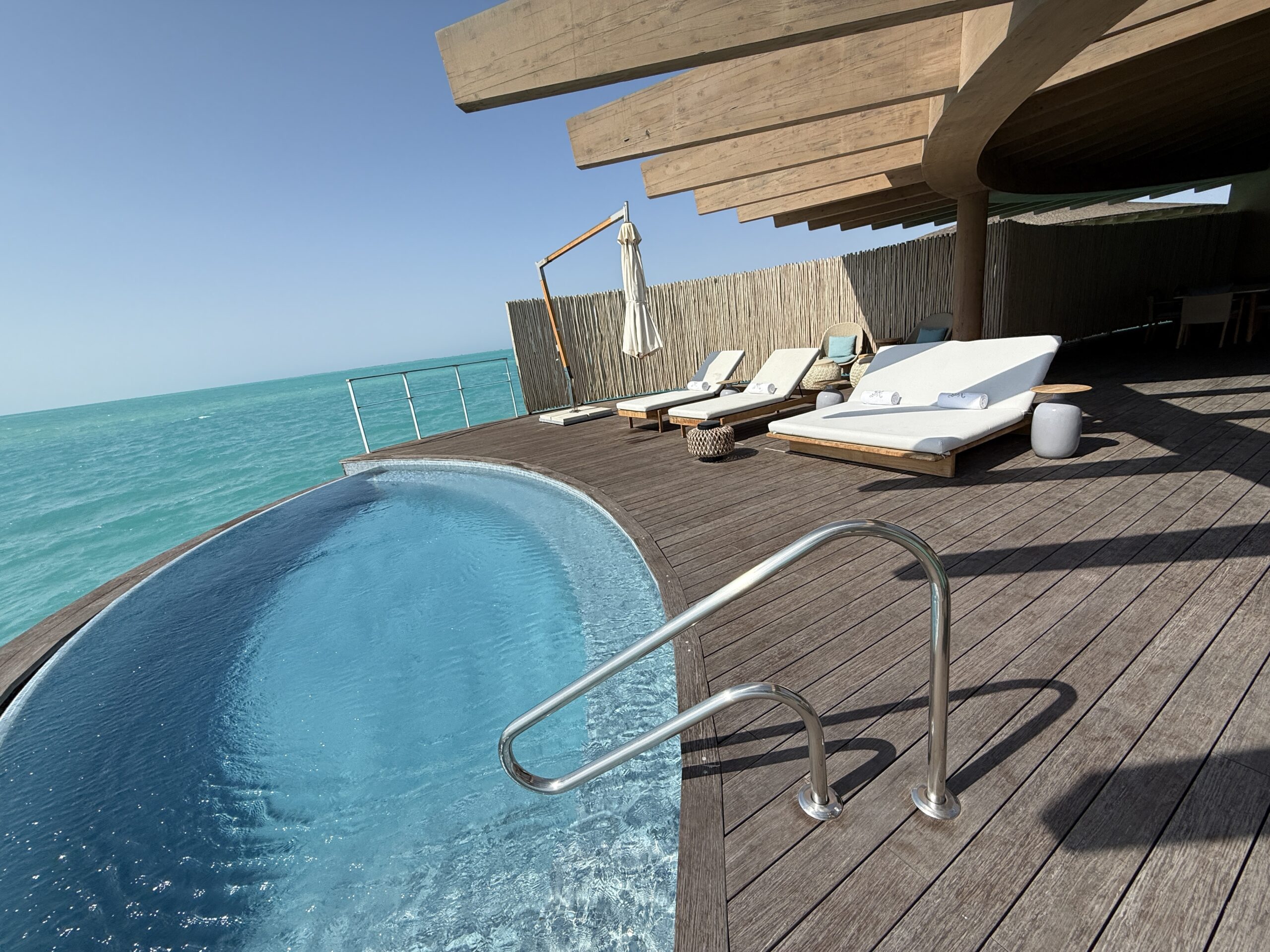 We experienced this property on an industry rate, but normal rates for a standard One Bedroom Dune Villa with one king bed start at 6,615 (SAR) and up before taxes, or 188,000–250,000 Bonvoy points per night.