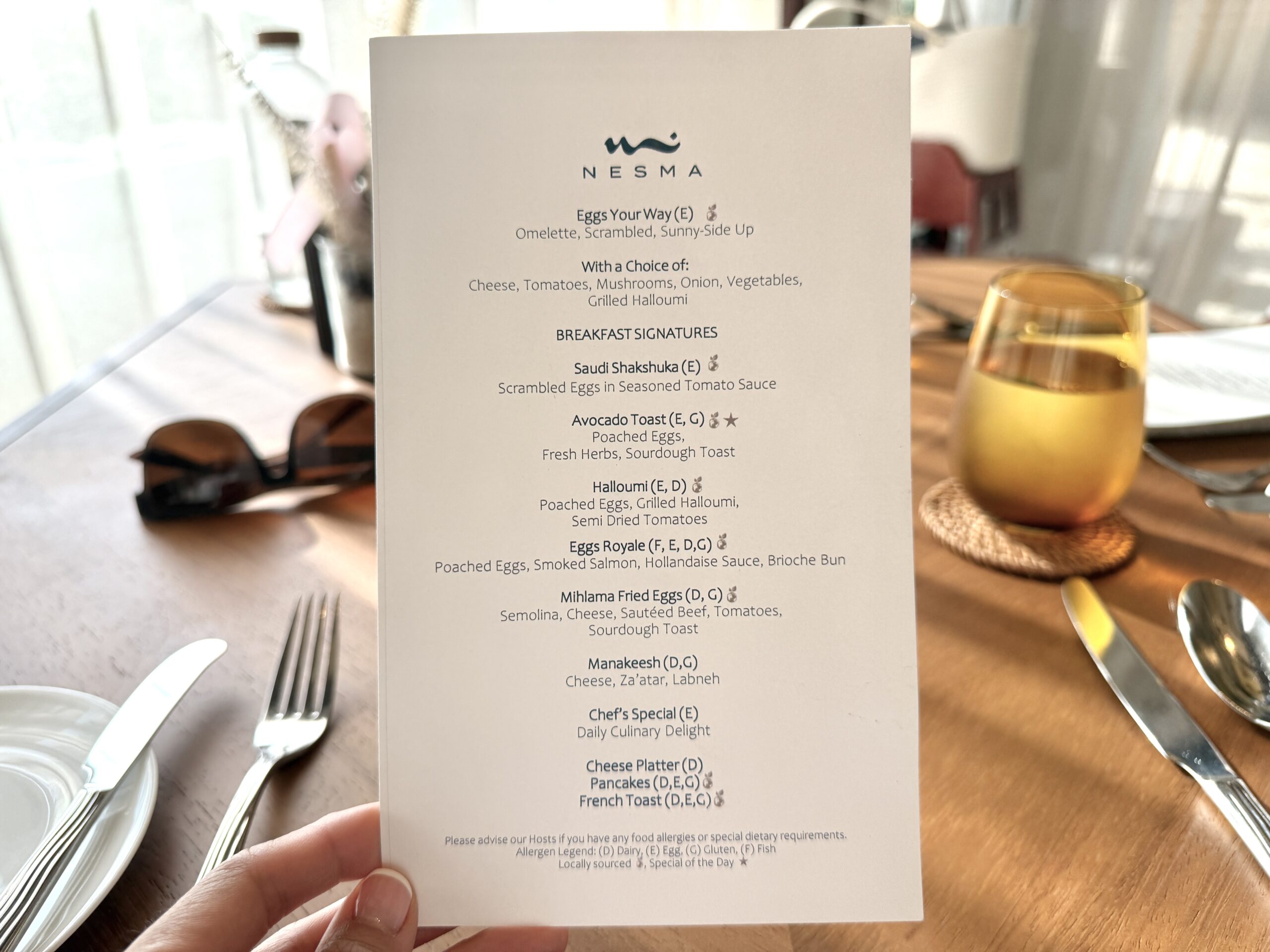 Breakfast at Nesma is included with all stays and was excellent, combining an well-rounded buffet with à la carte menu for main dishes.