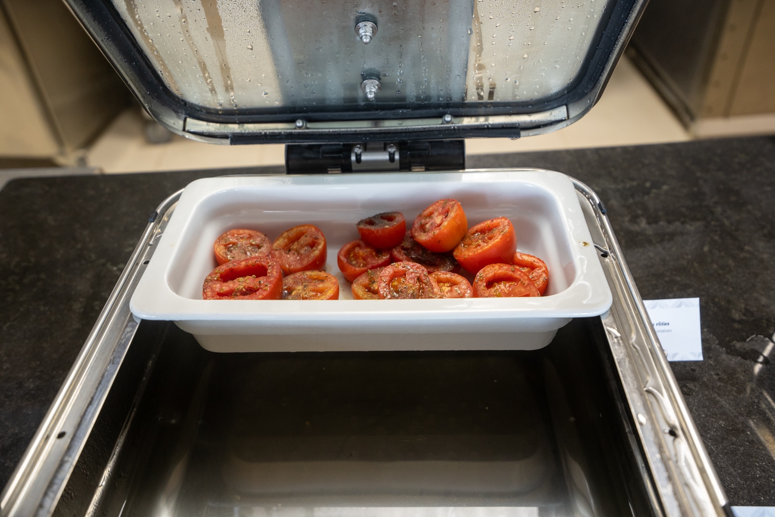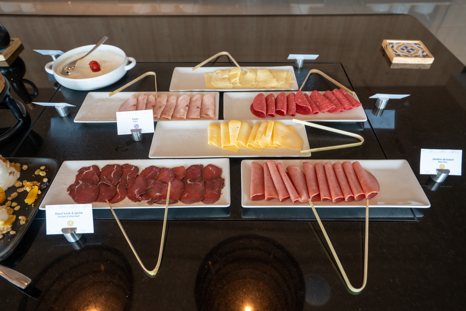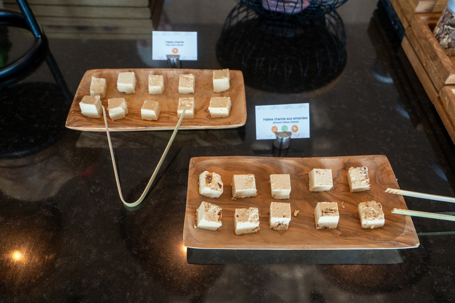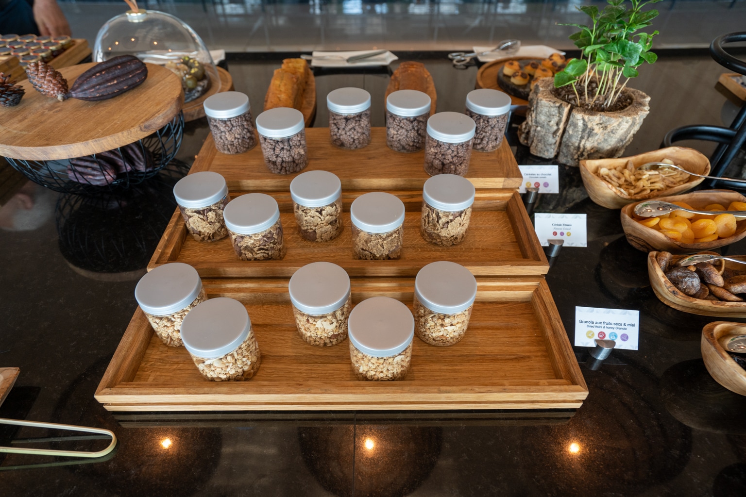 A selection of some traditional items was also available, including Tunisian masfouf. Furthermore, there were also a series of dried fruits, granola, and cereals, as well as the usual fruit, pastries, bread, and cold charcuterie.